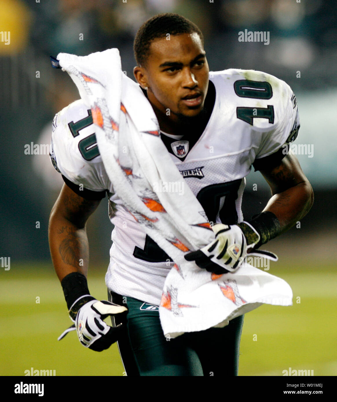 Philadelphia Eagles Rookie Wide Receiver Desean Jackson Waves A Towel As He Jogs Off The Field After The Fourth Quarter In Philadelphia At Lincoln Financial Field September 21 2008 Philadelphia Defeated Pittsburgh