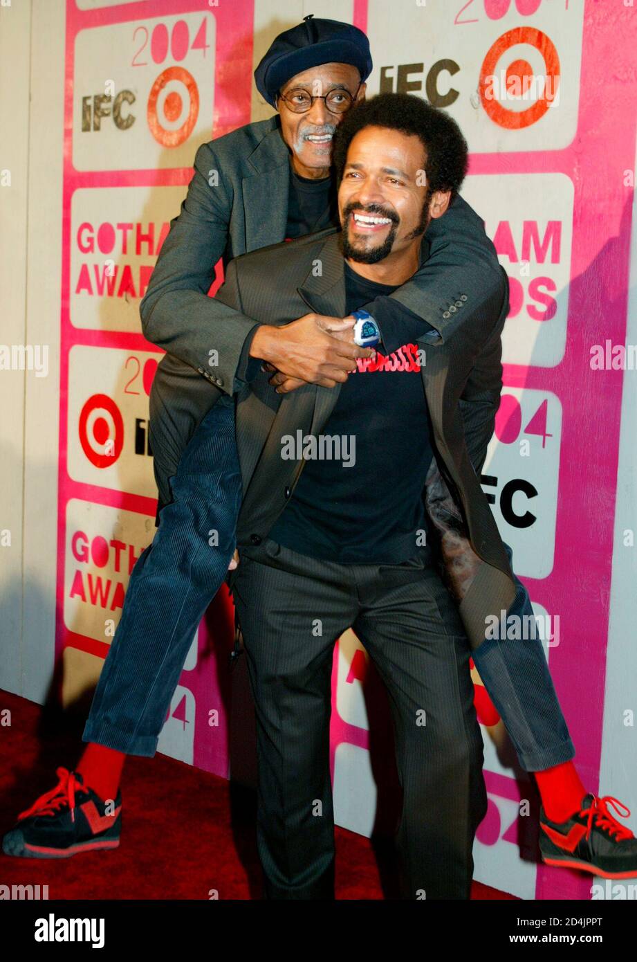 Actor And Director Mario Van Peebles R Poses With His Father Melvin On The Red Carpet As They Arrive At The 14th Annual Gotham Awards In New York December 1 2004 Reuters Jeff